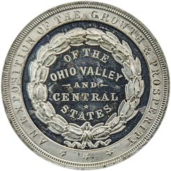 Rev. Border legend, An Exposition of the Growth & Prosperity * * *; within sunken central circle, a wreath; within wreath, of the / Ohio Valley / -• and •- / Central / * / States