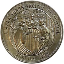 Obv. In center is Seal similar to Exposition Seal but without bust of Seward; above, around Alaska-Yukon-Pacific Exposition; below Seattle 1909