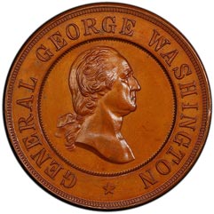 Rev. Male bust, in high relief, facing r.--in countersunk beaded circle; outside, around General George Washington; single star at bottom; beaded border.