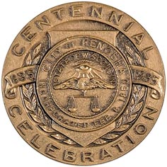 Obv. City Seal (?) on shield; to l., on ribbon 1835; to r., on ribbon 1935; above Centennial; below Seal Celebration