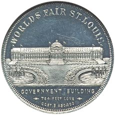 Obv. Edifice; above U.S. Government Building; below edifice Saint Louis World's Fair / 1904; very finely beaded border.