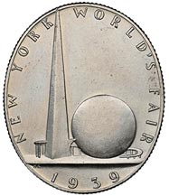 Obv. Trylon and Perisphere; around New York World's Fair; below 1939