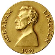 Obv. Male bust facing l.; to l., around Abraham; to r., around Lincoln; below bust 1939.