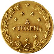 Rev. Circle of 9 stars around A / Token--all within open wreath tied at bottom with ribbon; another star in open space at top between wreath tips.