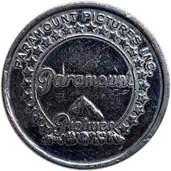 Rev. In center is familiar Paramount Pictures emblem or trademark i.e. a mountain; above Paramount; across mountain Pictures--all mostly within center circle; outside circle, immediately around are 24 stars; above all, at upper border Paramount Pictures Inc.