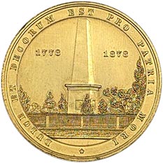Rev. Monument, to l. 1778, to r. 1878, inside fenced grounds--all within center circle; outside, around Dulce et decorum est pro patria mori * (translation: "It is a sweet and noble thing to die for one's country," paraphrased from Horace Odes book iii, ode 2)