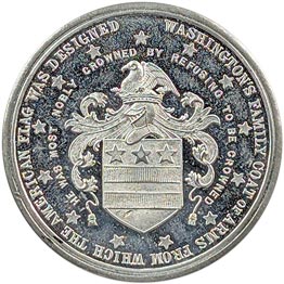 Rev. Coat of Arms in center; around He was most nobly crowned by refusing to be crowned; 13 stars around last lettering; border legend Washington's family coat of arms from which the American flag was designed
