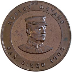 Obv. Within center circle is male military bust facing part r.; outside, above Robley D. Evans; outside, below San Diego 1908