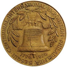 Obv. In upper center, Washington bust, facing r., within 13 stars; below, Philadelphia / 1926 / (Liberty Bell); around, Sesquicentennial-International-Exposition