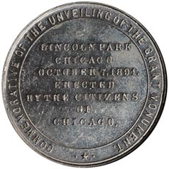 Rev. In center circle, Lincoln Park / Chicago / October 7, 1891. / Erected / by the Citizens / of / Chicago.; outside, around Commemorative of the Unveiling of the Grant Monument.; at bottom *