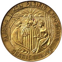 Medals: Official Medals struck in Mint Exhibit on grounds; sold by concessionaire Joseph Mayer & Brother, Seattle; Silver for $1; Bronze, Copper and Gilt for 25 cents.