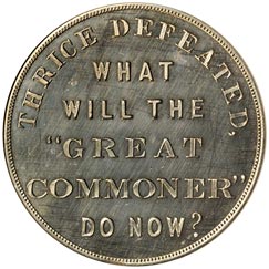 Rev. In six lines, Thrice Defeated, / What / Will the / "Great / Commoner" / Do Now?; beaded border.