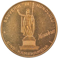 Obv. Statue; at l. border is a single star; at r. border Hawaii; above statue Souvenir of Honolulu; below statue King Kamehameha I