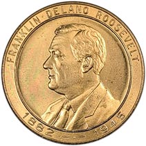 Obv. Male bust l. within circle; outside above, around Franklin Delano Roosevelt; below 1882 -- o -- 1945