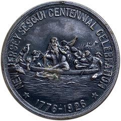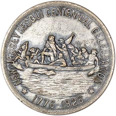 Obv. Scene depicting Washington crossing the Delaware; above, around New Jersey Sesquicentennial Celebration; below * 1776--1926 *; beaded border.