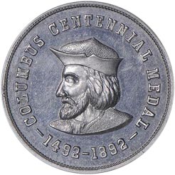 Rev. Male bust facing l.; above, around Columbus Centennial Medal; below bust --1492-1892--; beaded border.