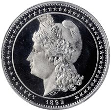 Obv. Bust, facing slightly to r., within beaded circle; above around, Christopher Columbus; below, around * 1492 1892 *; beaded border.