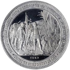 Obv. Scene depicting Landing of Columbus; below Landing of Columbus