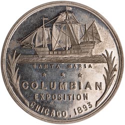Rev. In top center, ship; below, Santa Maria / * * * / Columbian / Exposition / Chicago, 1893; branch in lower l. and r. borders.
